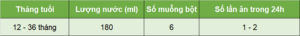 Bước 3: Chỉ sử dụng muỗng kèm theo, pha sữa theo tỉ lệ, 1 muỗng bột sữa (tương đương 4,5g) với 30ml nước. Muỗng bột không đong quá đầy. Sử dụng mặt sau của dao, hoặc dụng cụ tương tự để gạt phần sữa thừa.